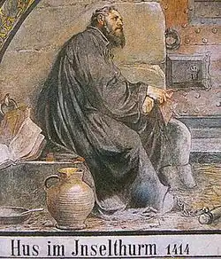 At the beginning of the Council of Constance, from 6 December 1414 to 24 March 1415, Jan Hus, considered the first Church reformer as he lived before Martin Luther, Calvin and Zwingli, was held in the dungeon of the monastery. This was in the basement of the round tower on the eastern side, overlooking the lake, next to the Dominicans' dining room. During the Council, the French delegation was housed in the chapter house.