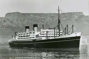 ![]() Dominion Monarch in Table Bay, South Africa, with Table Mountain in the background