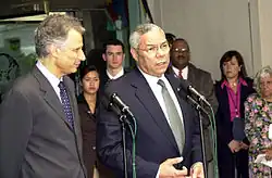 During the 2004 coup d'état in Haiti, Villepin obtained the backing of the United States Secretary of State, Colin Powell, in his bid to oust Jean-Bertrand Aristide from power.