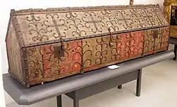 According to the entry in the Millstatt liturgical calendar, the public veneration of Domitian and his wife Mary[16][1] began very early after the abbey's foundation about 1070. After a blaze had devastated the monastic complex, their mortal remains were transferred to the newly built abbey church about 1130 and left to rest in a magnificent reliquary.