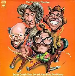 Don't Crush That Dwarf, Hand Me the Pliers is the Firesign Theatre's third comedy album, released by Columbia Records in July 1970. In 1983, The New Rolling Stone Record Guide called it "the greatest comedy album ever made".[3] It was nominated for a Hugo Award for Best Dramatic Presentation in 1971 by the World Science Fiction Society. In 2005, the US Library of Congress added the album to the National Recording Registry and called the Firesign Theatre "the Beatles of comedy."
