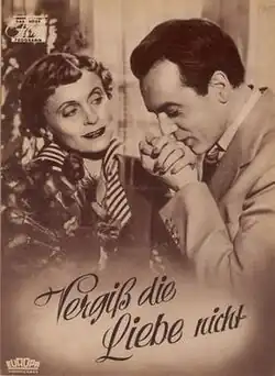 Don't Forget Love (German: Vergiß die Liebe nicht) is a 1953 West German romantic comedy film directed by Paul Verhoeven and starring Luise Ullrich, Paul Dahlke and Will Quadflieg.[1] It was shot at the Wandsbek Studios as well as on location in Hamburg and Innsbruck. The film's sets were designed by the art directors Hermann Warm and Heinrich Weidemann.