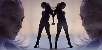 The music video starts with a blurred close up of Agnes, showing only parts of her face in front of some trees. This continues until the song starts, and Agnes' mouth is suddenly more sharp and shapes the first words of the song. The camera then zoom out and Agnes torso is visibly up front, wearing her hair out and in a black tight top. She is then duplicated as shown in the adjacent picture and starts to dance. Another background emerges with arrows pointing out and forming a circle around her, Agnes look into the camera and sings "Don't go breaking my heart, don't go breaking my heart.." showing the fragile part of someone when being heartbroken. In the next scene, there is strings with keys tied to them and flashing light bulbs hanging over a mirror with Agnes reflection in it, while she sings "The walls caving in, I'm giving in /../ I can't stop this now, 'cause my world revolves 'round you, and there's nothing I can do". Agnes is then shown in an upfront angle with a pony-tail and the wind blowing in her hair, this scene shifts with earlier scenes during the chorus. In the end, Agnes appears in a wedding dress with an arrow pointing out of her heart when she is slowly fading away.