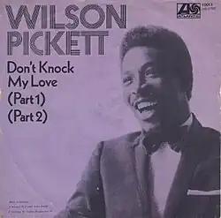 "Don't Knock My Love" is a hit song performed by R&B singer Wilson Pickett and written by Pickett with Brad Shapiro. Released in the spring of 1971 from the album of the same title, it spent a week at number-one on the Billboard Best Selling Soul Singles Chart and peaked at #13 on the Billboard Hot 100 Singles Chart.[3] The song, which was produced under a funk tempo was Pickett's last number-one single and one of his last hits for Atlantic Records.