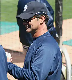 Donald Arthur Mattingly (born April 20, 1961)[1] is an American professional baseball coach, and former first baseman and manager who is the bench coach for the Toronto Blue Jays of Major League Baseball (MLB). Nicknamed "the Hit Man" and "Donnie Baseball", he spent his entire 14-year MLB playing career with the New York Yankees and later managed the Los Angeles Dodgers for five years and the Miami Marlins for seven years.