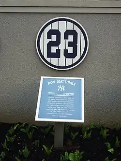 - ^ Curry, Jack (January 23, 1997). "Mattingly Says Farewell, and So Does His Number". The New York Times. p. B13. Retrieved February 3, 2015.