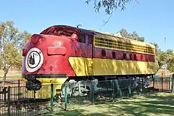 Three standard gauge locomotives are on display in the centre of the museum. Each of them previously operated on one or both of the mining railways that terminate at Port Hedland (the Goldsworthy railway and the Mount Newman railway).