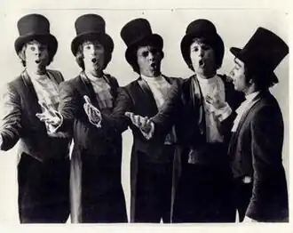 Thanks to Gallucci's connections in the music industry, the group was quickly signed by record producer Jerry Dennon of Jerden Records — the same producer of early Kingsmen recordings. The band traveled to Audio Recording Studio in Seattle to cover "Turn On", an instrumental piece that was garnering success for several local teen rock groups.[6] "Turn On" was released on the A-side of the band's debut single and received airplay in the Northwest. Holden described Don and the Goodtimes early success: "We went on the road backing up this record and got some local airplay! We were an interesting band because we had these R&B roots but at the same time we realized that kids really liked show bands — like Paul Revere and the Raiders — so we amalgamated the two".[6] For live performances, Don and the Goodtimes chose distinguishable attire—typically sporting suits and top hats.[7] In 1965, after releasing their second single "Big Big Knight (On a Big White Horse)", Jim Valley of the Viceroys was brought in to replace Ouellette and occasionally share lead vocals with McKinney.[8]