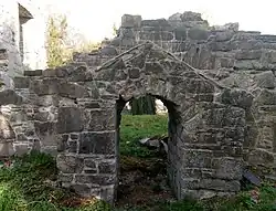A sketch of 1770 shows the church with a roof and a tower in the west end. A map of 1783 lists the site as Ch. Rs. (church ruins) and the 1897 map lists it as ruinous.[13] However, the church is surrounded by a still-active graveyard; the earliest-dated grave still legible is that of a Nicholas Walsh, died 1711.