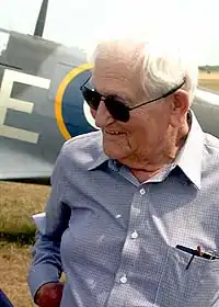 Donald James Matthew Blakeslee (September 11, 1917 – September 3, 2008)[1] was an officer in the United States Air Force, whose aviation career began as a pilot in the Royal Canadian Air Force flying Spitfire fighter aircraft during World War II. He then became a member of the Royal Air Force Eagle Squadrons, before transferring to the United States Army Air Forces in 1942. He flew more combat missions against the Luftwaffe than any other American fighter pilot,[2] and by the end of the war was a flying ace credited with 15.5 aerial victories.