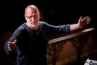 Nally has guest conducted the Swedish Radio Choir,[8] the Latvian State Choir, the Grant Park Symphony Chorus,[9] and the Santa Fe Desert Chorale;[10] he has prepared choirs for the New York Philharmonic, the Los Angeles Philharmonic, Philharmonia Orchestra, the BBC Symphony Orchestra, the Philadelphia Orchestra (including the world premiere of Hannibal’s One Heart Beating),[11] the Pennsylvania Ballet,[12] the Illinois Symphony Orchestra, and Spoleto USA. Nally collaborates often on living-art installations with the artists Allora & Calzadilla, with scores by David Lang, which have been staged in Frankfurt, Osaka, Edmonton, Cleveland, Córdoba, London, Philadelphia, and Houston.[13] He was music director for Lang's The Mile-Long Opera, overseeing a thousand singers on The High Line in Manhattan.[14]