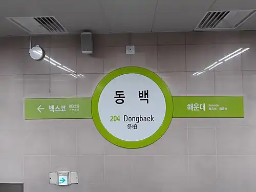 - ^ "Dongbaek metro station - Busan Metro". Metro Line Map. Retrieved 2024-12-28.