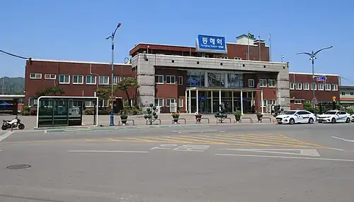 Donghae station is a railway station in Donghae City in Gangwon Province, South Korea. Donghae station is on the Yeongdong Line, the Samcheok Line, the Mukhohang Line, and the Bukpyeong Line.