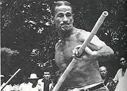 Draeger also participated in judo activities in Japan. For instance, in 1961, Draeger and British judo athlete John Cornish were the first non-Japanese athletes selected to demonstrate nage-no-kata during the All-Japan Judo Championships.[26] Draeger became a member of the Nihon Kobudo Shinkokai, the oldest Japanese cultural organization for the study and preservation of classical martial arts. He was the first non-Japanese practitioner of Tenshin Shōden Katori Shintō-ryū, achieving instructor status (kyoshi menkyo) in that system. He also held high ranks in Shindo Muso-ryu jodo, kendo, karate and aikido, among other arts.[2][27][28][29]