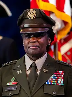 Donna Whitley Martin[2] is a retired United States Army lieutenant general who served as the Inspector General of the United States Army from 2021 to 2025.[3] She is the first female Inspector General of the Army.[4] She previously served as the 18th United States Army Provost Marshal General / Commanding General, United States Army Criminal Investigation Command,[5] from 2020 to 2021. She was also the commanding general of the United States Army Maneuver Support Center of Excellence and Fort Leonard Wood, and prior to that was commandant of the United States Military Police School from 2017 to 2018 and deputy commanding general of the United States Army Recruiting Command from 2015 to 2017.[1][6]