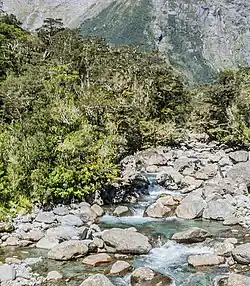 The Donne River is a river in the Southland Region of New Zealand. It arises in the Darran Mountains near Karetai Peak and flows south-west to join the Cleddau River. State Highway 94 crosses the Donne just before it reaches the Cleddau.[1] The river was named by W. G. Grave in 1907 after Thomas Edward Donne, the General Manager of the Tourism Department.[2]