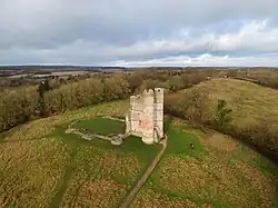 Donnington Castle,[1] a ruined medieval castle of some historical significance, was the home of Richard Abberbury the Elder. The second Battle of Newbury (27 October 1644) was fought between Newbury and Donnington as an attack on the castle, which was held for the Royalists by Sir John Boys. The main entrance range of Donnington Castle House was built in 1648 to incorporate an earlier lodge.