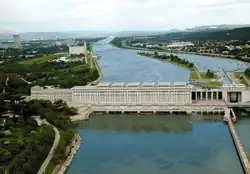The Donzère-Mondragon Dam (or André-Blondel dam), located in the French commune of Bollène-Écluse is a hydroelectric dam and lock built in 1952 at the southern end of the Donzère-Mondragon canal, in the Vaucluse department in France. It was registered in the list of historic monuments in France in 1992.[2]
