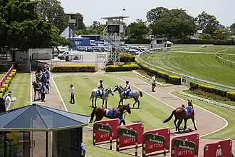 Doomben racecourse is currently owned and operated by the Brisbane Racing Club (BRC), an entity which also owns and operates the neighbouring racecourse – Eagle Farm – which together, serve as the two most prominent Racecourses in South East Queensland.[11] The BRC has operated within and between these two courses since the club's establishment in 2009, following a merger between two clubs; the Queensland Turf Club (QTC) and the Brisbane Turf Club (BTC). The QTC, prior to the merger, had operated out of Eagle Farm Racecourse since the club's first race meeting in August 1865, with the BTC operating solely from Doomben racecourse. Although the BTC has conducted race meetings at Doomben since the course's opening and inaugural race in 1933, the BTC was formally known as the Brisbane Amateur Turf Club (BATC) which was the club that the Doomben course officially opened under. This change in club name, from BATC to BTC, occurred in 1997 and remained up until the 2009 merger.[3]