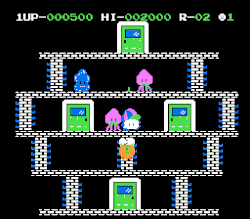 The 50th level requires such timing that failure at any part guarantees an impossible-to-win scenario. As in the previous case, the player's only option is to intentionally lose a life to continue play. This is not a programming error, but another aspect of the game's difficulty level. This is a unique trait of Door Door as most games prevent such a scenario with a time limit (such as Super Mario Bros.) or physical restriction (such as Tetris). There is no ending in Door Door; after completing the final level, the game simply restarts at the first level, although the player's accumulated score is retained for the player to build higher through continued play.