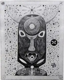 Developing an interest in occultism, she began practising ceremonial magic with a friend, "Zerki", at his flat.[21] She had obtained the magical regalia and notebooks of a recently deceased doctor, who had been a member of the Alpha et Omega, a splinter group of the Hermetic Order of the Golden Dawn, and attempted to learn Hebrew, a language with uses in various forms of ceremonial magic.[22] It was at this point that she selected "Ameth" as her magical name.[23] She was particularly interested by John Symonds' book The Great Beast, which was a biography of the occultist Aleister Crowley, who had founded the religion of Thelema in 1904,[24] and following this she avidly read a copy of Crowley's Magick in Theory and Practice which she found in a local library.[25] Alongside these, she also had some practical experience with the esoteric religions of Spiritualism and Theosophy, having attended the services of a local Christian Spiritualist church in Charminster.[26]