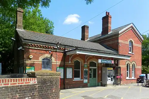 Dormans railway station is on the East Grinstead branch of the Oxted line in southern England. It serves Dormansland and Dormans Park in Surrey. Most trains run between London Victoria and East Grinstead and are operated by Southern. Thameslink trains call at peak times on weekdays.