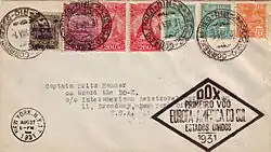 To introduce the airliner to the potential United States market[1] the Do X took off from Friedrichshafen, Germany, on 3 November 1930, under the command of Friedrich Christiansen for a transatlantic test flight to New York.[1] The route took the Do X to the Netherlands, the United Kingdom, France, Spain, and Portugal. The journey was interrupted at Lisbon on 29 November, when a tarpaulin made contact with a hot exhaust pipe and started a fire that consumed most of the left wing.[8] After sitting in Lisbon harbour for six weeks while new parts were fabricated and the damage repaired, the flying boat continued with several further mishaps and delays along the Western coast of Africa and by 5 June 1931 had reached the islands of Cape Verde, from which it crossed the ocean to Natal in Brazil.[8]