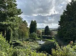 The garden occupies 12 acres, and is separated into two equal-sized sections, with the tearoom, pavilion, and quarry garden entrance dividing separating the two sections.[4][6] The layout of the garden was designed by Colonel Clive to be a gentle walk throughout, due to his wife, Dorothy, ailing, as he intended for it to be a therapeutic garden for her.[5]