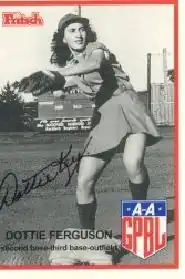 A native of Virden, Manitoba, Ferguson was one of the sixty-eight girls from Canada who played in the AAGPBL during its 12-year history. Athletically inclined from a young age, she began skating and was soon involved in softball. In 1939, she was named the North American women's speed skating champion. Only the coming of World War II prevented her from competing for Canada in the Olympics. Due to the conflict, the Games of 1940 to be held in Tokyo temporarily relocated to Helsinki, and upon the outbreak of war were canceled.[3][4]