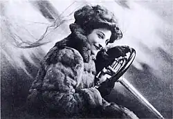 The public, in its mind's eye, no doubt figures this motor champion as a big, strapping Amazon. Dorothy Levitt is exactly, or almost so, the direct opposite of such a picture. She is the most girlish of womanly women.[6][33]