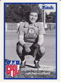 Dorothy Maguire (November 21, 1918 – August 2, 1981) was a catcher and outfielder who played from 1943 through 1949 in the All-American Girls Professional Baseball League. Maguire batted and threw right-handed. She also played under the name of Dorothy Chapman.[1]