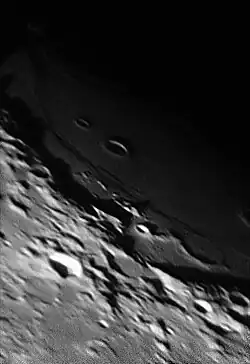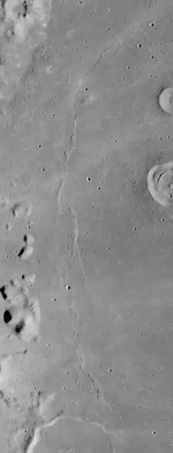 The ridge trends north from Yerkes crater. Peirce and Swift craters lie to the east of the Dorsum.