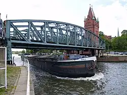 When the Dortmund–Ems Canal was planned, it seemed to allow a barge that would be very economical. In 1878, barges of 700–800 ton had been the largest vessels on the Rhine.[2] The Dortmund–Ems Canal barge was called '600t barge', but could actually load 750t.[3] In 1886 authorities decided to build the canal.[4] However, when the canal was opened in 1899, barges of over 1,500t were already in use on the Rhine.[2]