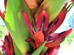 Doryanthes palmeri, also known as the giant spear lily, is one of only two species of plant in the genus Doryanthes and the family Doryanthaceae, both being endemic to eastern Australia. It grows in a rosette and the leaves can reach the length of about 3 m (10 ft). The flowers arise in springtime on a stalk which may reach 5 m (16 ft) in height.[1] A succulent perennial, its leaves are hairless and grow in the shape of a sword. The giant spear lily is listed as Vulnerable under the New South Wales Threatened Species Act (1995).[2]