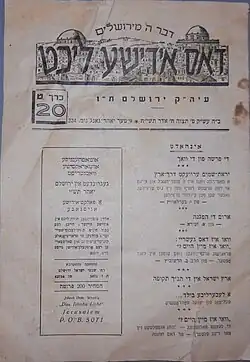 Dos Yiddishe Licht was founded by R' Moshe Ehrntal, an activist of the Yishuv haYashan and had his fingerprints. DYL was formerly one of the only few Kosher Yiddish reading material for children. It was published by "Bnos Yerusheloyim".[2]