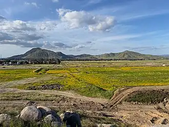 ![]() Double Butte Mountain viewed from the south in Winchester, California | |