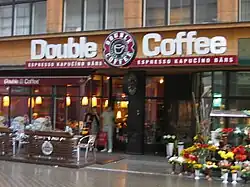 The first Double Coffee cafe opened on 26 September 2002, in the city of Riga, on Stabu Street. The year it was founded it won the best trader in Riga 2002, and also the best Latvian trader 2002. Five new Double Coffee houses opened in 2003 and at the end of 2005 there were 16 in Latvia with branches subsequently opening in Estonia, Lithuania, Belarus and Ukraine. The chain opened its first non-European branch in June 2009 in Beijing, China[1] In 2009, the Estonian section of the chain went bankrupt,[2] followed in 2011 by bankruptcy in Lithuania and a withdrawal from both those countries' markets.[3]