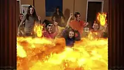 Double Fine performed internal playtesting, leaving the game running in a conference room to allow anyone passing to try it, and brought in friends and families with young children to try it out.[6] Microsoft Game Studios also assisted with playtesting, providing Double Fine with live feeds of weekly testing sessions with children and their parents playing with the game.[7] Testing with children was found to be important, as the children would identify new ways of playing with the modes that the team would later incorporate.[5] In the lava mode, Schafer and his team originally envisioned that children would play "avoid the lava", standing and stepping between furniture to avoid stepping in it. Instead, when they tested the mode with children, the children played in the virtual lava, leading the team to add additional responses to these actions for the game.[5] Some of the Achievements for the game resulted from watching these new interactions by children.[7] The development team found that capturing the virtual physical interactions that would occur with the activity was more important than setting up predetermined behavior, as it would lead to more natural actions and enjoyment from players; for example, as long as they provided the appropriate physical nature of a ball pit, players "instinctively know the "right" thing to do. "Jump into it!" according to Skillman.[8] Despite the aim for children, the Double Fine team found the game to appeal to "three-year-olds or college dorm rooms full of drunken 20-year-olds".[10]