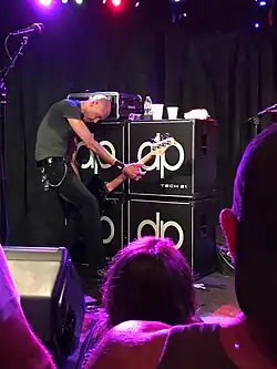 He used Ampeg amplifiers exclusively, but the New York-based Tech 21 released his signature bass amp head, the dUg Ultra bass 1000.[24] In 2018 Tech21 released a signature pedal, based on the amp.[25] He also uses a complex rig set-up including many EQs and amplifiers. Additionally, Pinnick is a user of the Line 6 POD pro, which he employs for effects. Interestingly, he uses the guitar, not the bass model of the POD pro effects.[26]
