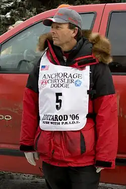 Doug Swingley (born May 14, 1953) is an American dog musher and dog sled racer who lives in Lincoln, Montana, and is a four-time winner of the Iditarod Trail Sled Dog Race across Alaska. His first Iditarod was in 1992. His first victory came in 1995 and he followed it by winning in 1999, 2000, and 2001. He competed in every Iditarod from 1992 to 2002, and during his rookie outing he won the Dorothy G. Page Halfway award, for being the first musher to reach the halfway point of the race. He is the only winner from the lower 48 states and second in number of wins.[1] Prior to his Iditarod wins, he also won the Montana Race to the Sky in 1991.