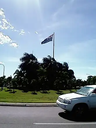 ![]() Flag at roundabout on the Bruce Highway at the entrance to Douglas | |||||||||||||||