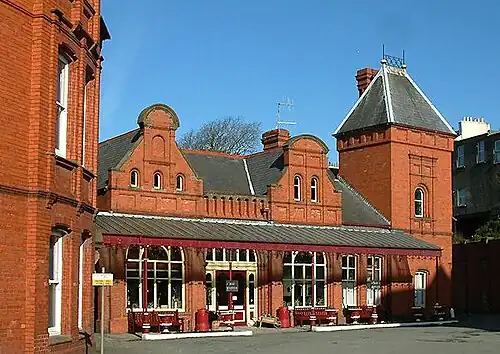 By the mid-1880s it was clear that rail traffic had outgrown the modest original station, and that rebuilding was necessary. This commenced in 1887 with the construction of Offices, refreshment room and bar, and a new ladies' waiting room on the site of an old warehouse in the south east corner of the site. This was followed by a new booking hall and platforms (1891/2), a signal box (1892); a new carriage shed (1893); new workshop, locomotive shed, and carpenters' shop (1892–96); men's lavatory (1904); platform canopies (1909), and stables c.1913. This station remained largely intact until 1979 when the station was rationalized. The station, together with gateway and other structures, was listed on the Isle of Man's Registered Buildings in 1984.[1]