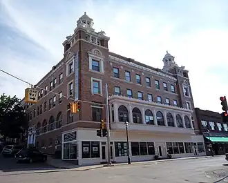 The original Douglass House was a three-story frame structure built in 1860 on the corner of Isle Royale and Montezuma Streets, with a garden stretching to Shelden.[2] The hotel had 50 rooms for out-of-town visitors, and the dance hall and dining room served as the social center of Houghton.[3] In 1899, a group of Houghton-area investors, headed by John C. Mann, incorporated the Douglass House Company and purchased the hotel.[3] By that time, the original frame structure was showing its age,[3] so the Company settled on the idea of constructing an addition that would be appropriate for Houghton's new-found prominence.[2][4]