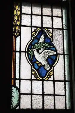 In Christian Iconography, a dove also symbolizes the Holy Spirit, in reference to Matthew 3:16 and Luke 3:22 where the Holy Spirit is compared to a dove at the Baptism of Jesus.[22][23]