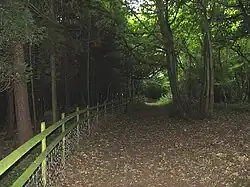 The character of this wood was changed dramatically in the 1950s and subsequently by replacing with conifers following felling of mature Oak, Ash, Beech and many diseased Elms. Replanting work has replaced conifers for broad-leaf.