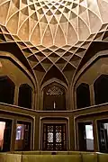 The garden contains several buildings, such as Talar-e Ayeneh (mirror hall building), frontispiece house, Behesht-Aeen building, Badgir building, Haremsara (women quarters), Tehrani building, servants quarters, courthouse, kitchen (cook house), archway, cistern, Shotorkhane, summer and winter stables, and a Qanat.[2][3][6][7]