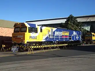 In February 2004, Pacific National ordered 13 GT42CU ACs to commence operations in Queensland. Designated the PN class, they entered service in 2005 and are used on intermodal services on the North Coast line between Brisbane and Cairns.[4][7][8][9][10]