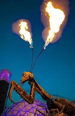 - ^ Schoenmann, Joe (August 5, 2013). "Run, don't walk. Fire-breathing praying mantis menaces downtown Las Vegas". Las Vegas Sun. Retrieved June 29, 2020.