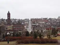 Streets in Duluth's downtown area features dramatic upward slopes, a feature common to many of Duluth's neighborhoods due to the 800-foot (240 m) elevation difference between the shore and the hilltop.