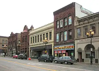 Five blocks along Superior Street and seven blocks along 1st Street West have been designated the Duluth Commercial Historic District, with 87 contributing properties built between 1872 and 1929.[2] It was listed as a historic district on the National Register of Historic Places in 2006 for its state-level significance in the themes of architecture and commerce.[3] It was nominated for representing Duluth's commercial development and popular architectural styles at the turn of the 20th century.[2]